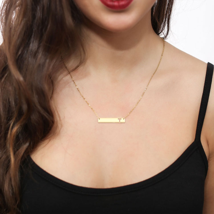 Bar & Letter Cutout Initials Necklace is available for purchase in increments of 1