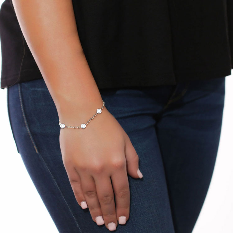 This laser cut & hand-crafted Sterling Silver or Solid Gold Diamond By The Yard Bracelet, features a timelessly elegant diamond bezel draped beautifully on a Rolo chain. You can choose from a 14", 16", 18", 20", 22" or 24" length chain. Our bracelets are elegant alone or for layering. Using the best technologies as well as their expertise, Our craftsmen will ensure the quality and structure of your customized piece. Material options include Sterling Silver, 10k solid gold, 14k solid gold and 18k solid gold. Furthermore you can choose the color tone of these metals to be either silver/white gold color, yellow gold color or rose gold color.