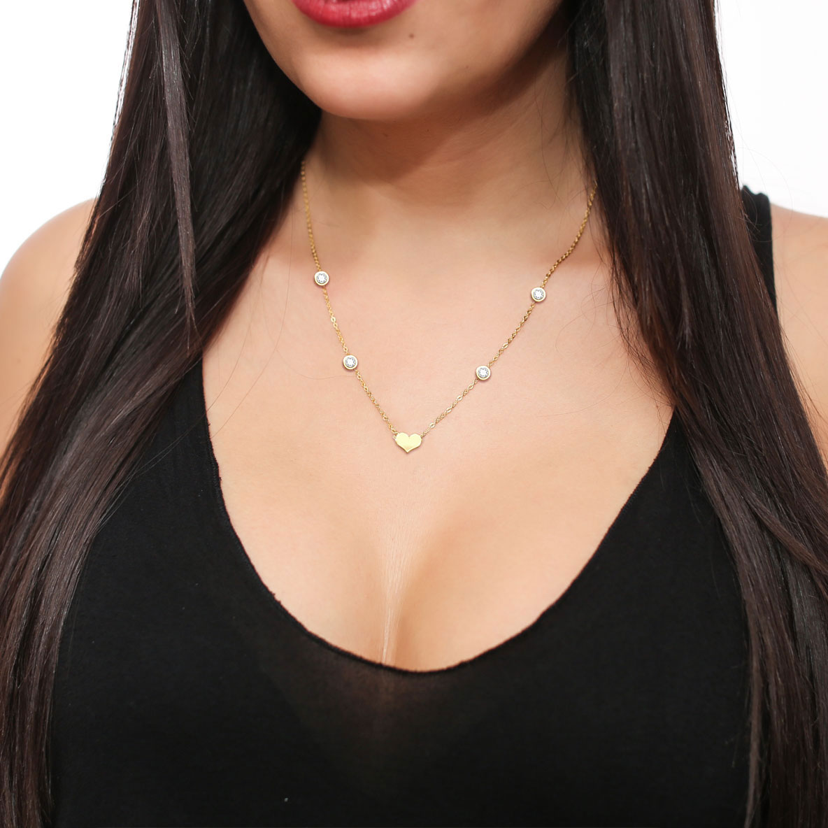 Diamond By The Yard Necklace - Heart & 4 Diamonds